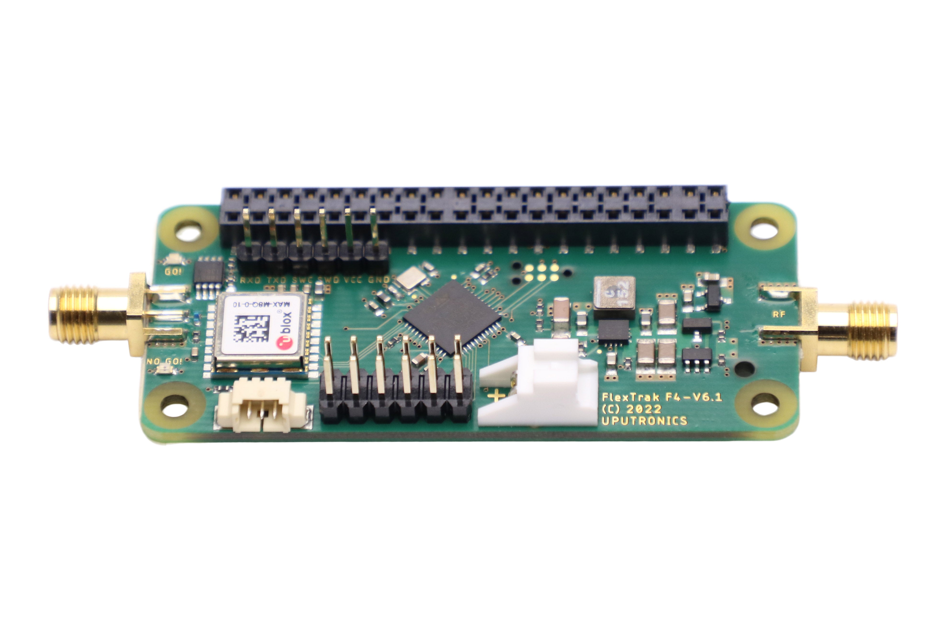 The board is supplied with a 434,868 or 915 MHz LoRa radio transmitter To track the location of flight you also need a suitable radio receiver, aerial and PC on the ground. It can be tracked with a mobile phone connected to our LoRaGo device.