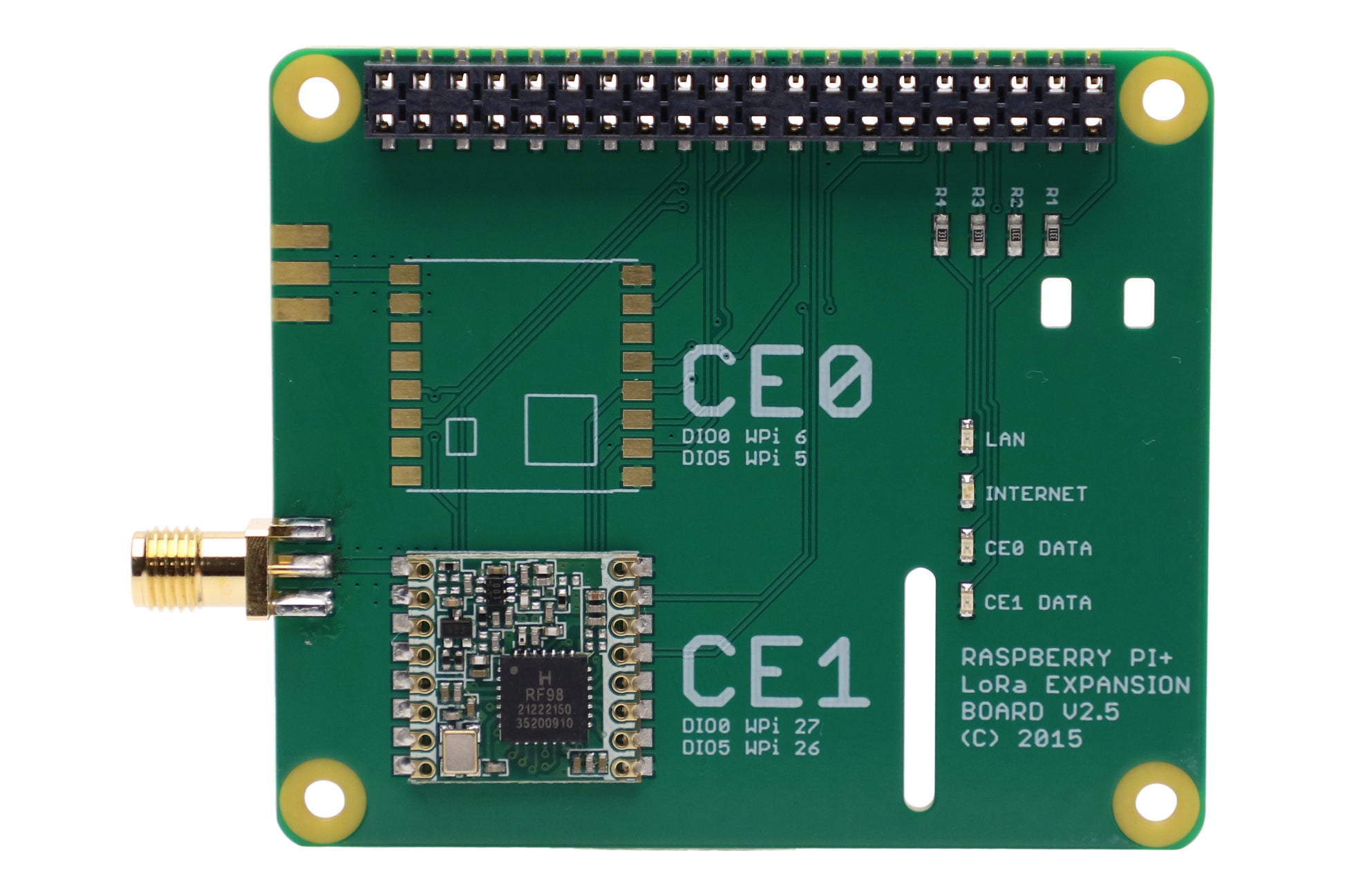 Supplied with suitable header and standoffs, SMA and purchased modules installed. First module purchased will be installed in the CE1 slot, the second in the CE0 slot. If you plan to use this board in conjunction with the Pi In The Sky system only modules in CE1 are supported.